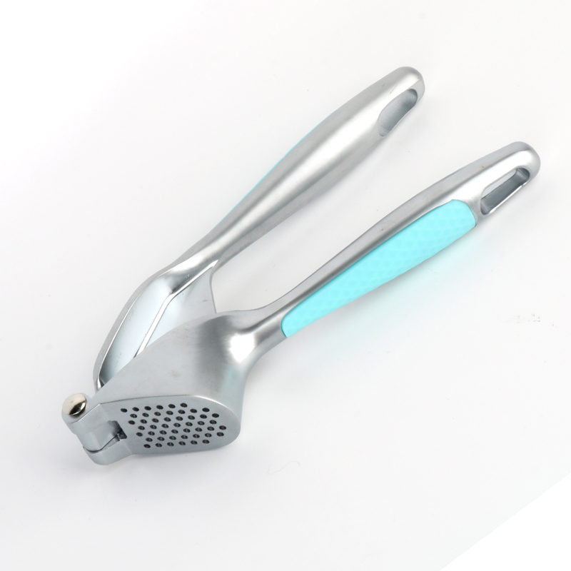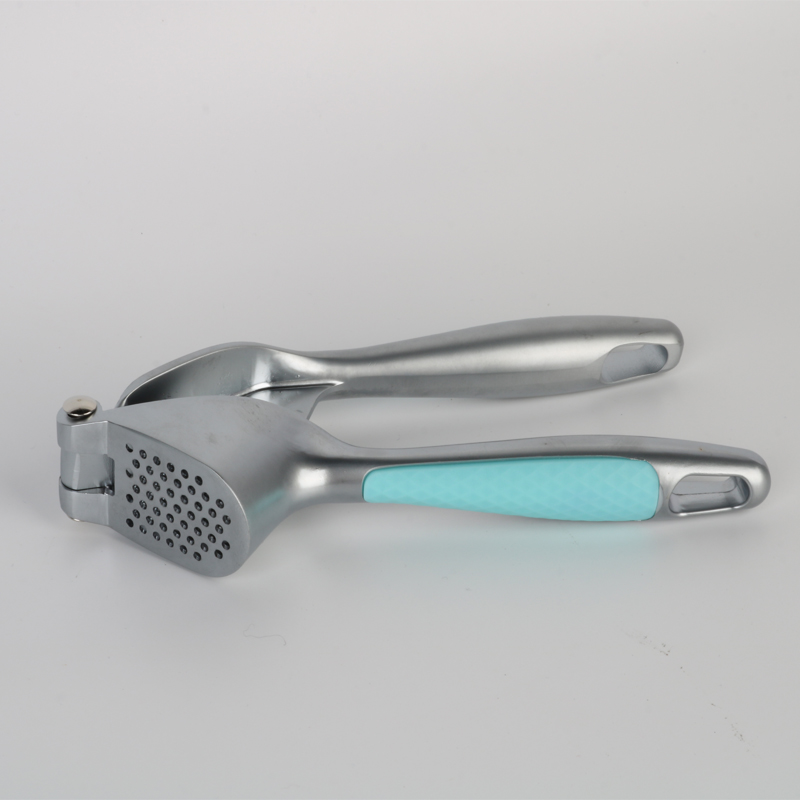 Часниковий прес виготовлено з високоякісного екологічно чистого сплаву цинку. Після лиття під тиском і тонкого полірування на нього наносять гальванічне покриття в різні кольори. Кожен колір поєднується з відповідною пластиковою ручкою в стилі Macaroon, розробленою для запобігання ковзанню. Це не тільки покращує загальну якість продукту, але й гарантує, що він залишається блискучим і чистим навіть під час впливу води, олії, соусів і оцту. щоденне використання. Отвори преса для часнику з міцного цинкового сплаву нового дизайну для вивільнення часнику щільно розташовані по колу. Завдяки тиску вниз від пресувального механізму та принципу важеля часникова паста легко й ефективно витягується в однорідну та дрібну консистенцію, що значно покращує ефективність приготування.