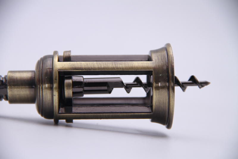 Ця відкривачка для вина, виготовлена зі сплаву цинку та відлита під тиском із хитромудрим гравіюванням форм у стилі ретро, передає суть старовини. На її поверхні є навмисні сліди віку, що нагадують патину минулих століть, тоді як спіральний дизайн забезпечує безперебійне відкорковування.