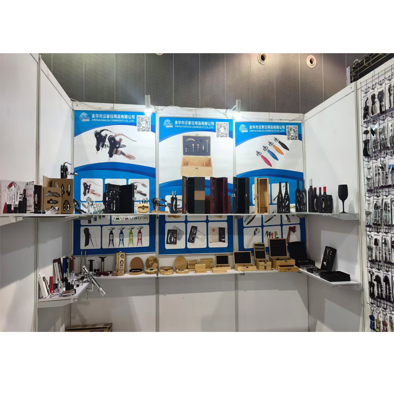 Jinhua Hanjia Commodity Co., Ltd., розташована в тому самому адміністративному регіоні, що й місце проведення виставки, і в межах однієї години їзди від Іу, має невід’ємні переваги регіонального економічного виробничого ланцюжка. Використовуючи процвітаюче міжнародне бізнес-середовище електронної комерції Іу, наша компанія вибрала сім серій продуктів і сотні товарів, які підходять для внутрішніх і міжнародних платформ електронної комерції, операторів і підприємці. Ці продукти включають товари для дому та кухні, аксесуари для вина, такі як штопори для вина з нержавіючої сталі та легованого сплаву, пробки для вина, інструменти для шампанського, преси для часнику, горіхові крекери, відкривачки для консервів, очисник, розм’якшувач м’яса, шейкери, фляги з нержавіючої сталі, графини для вина, дерев’яні та поліуретанові набори для вина, коробки для вина тощо.
