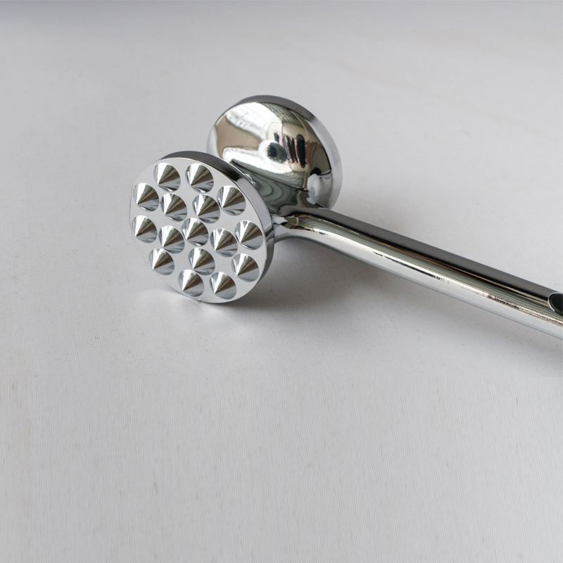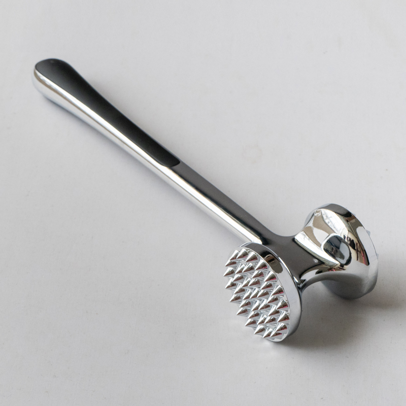 Це розм’якшувач м’яса зі сплаву цинку виробництва Jinhua Hanjia Commodity Co., Ltd, виготовлений за допомогою інтегрованого процесу лиття під тиском. Металева поверхня ретельно полірується вручну, а весь виріб проходить екологічно безпечний процес гальванічного покриття. Потім покриття пасивується, щоб зробити його твердим, як сталь. Завдяки довжині 22 см він ідеально підходить для зручного захоплення дорослою людиною. рукою. Розподіл ваги між передньою та задньою частинами тендерайзера розроблено відповідно до золотого перерізу, що дозволяє користувачам бити по м’ясу з мінімальними зусиллями, покладаючись виключно на силу тяжіння головки молотка. Головка тендерайзера має дві різні поверхні для різних типів м’яса. Пластикові буфери з обох боків ручки забезпечують комфорт при тривалому використанні. Загальна вага тендерайзера становить 275 грамів, а його конструкція забезпечує відмінну якість. функціональність при зниженні вартості порівняно з традиційними моделями більш ніж на 13%. Його також дуже легко чистити, ви можете просто промити його водою або скористатися посудомийною машиною.